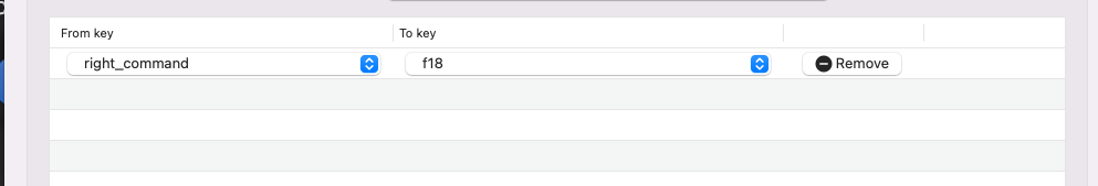2. 실행후 다음과 같이 지정 right_command를 f18로매핑